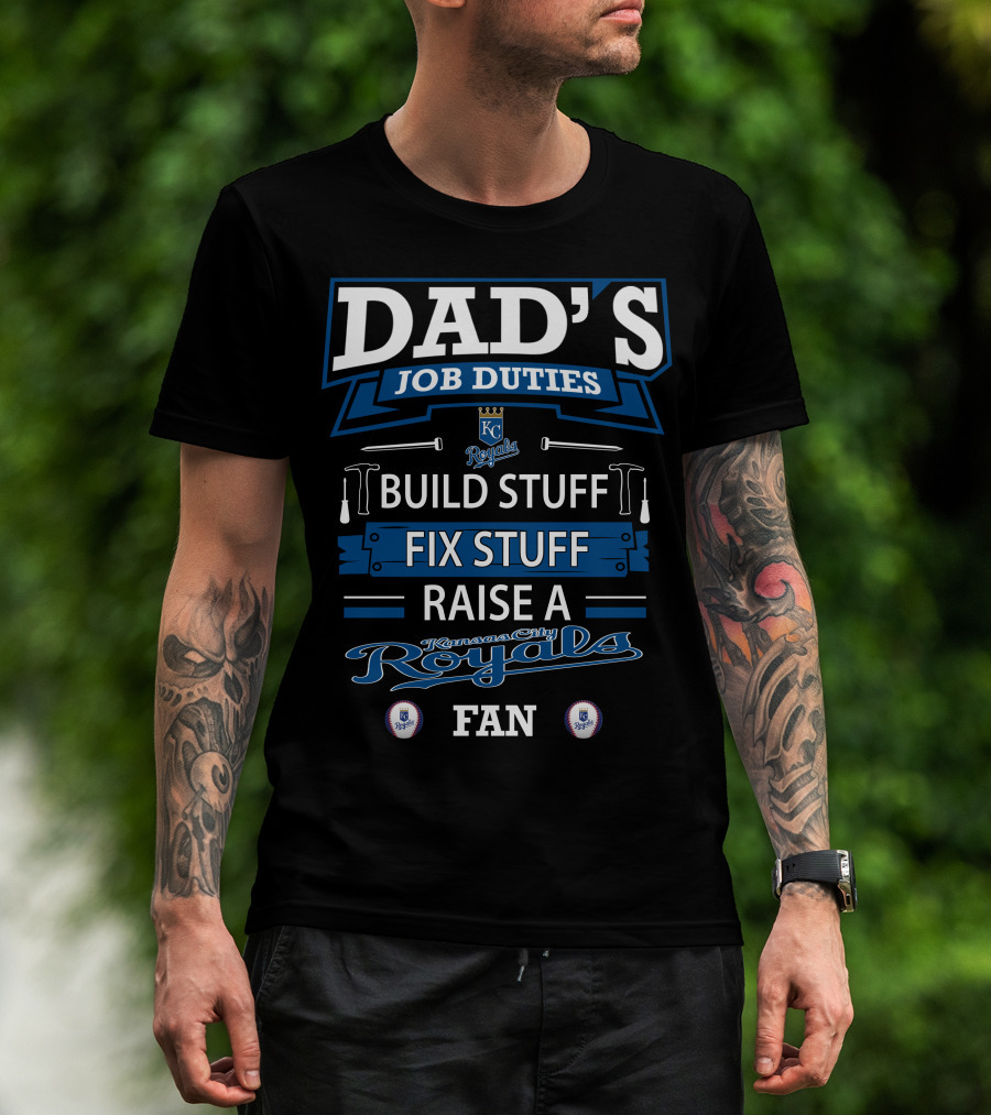 DAD'S JOB DUTIES KC Royals Build Stuff Fix Stuff Raise A Kansas City Royals Fan T-Shirt