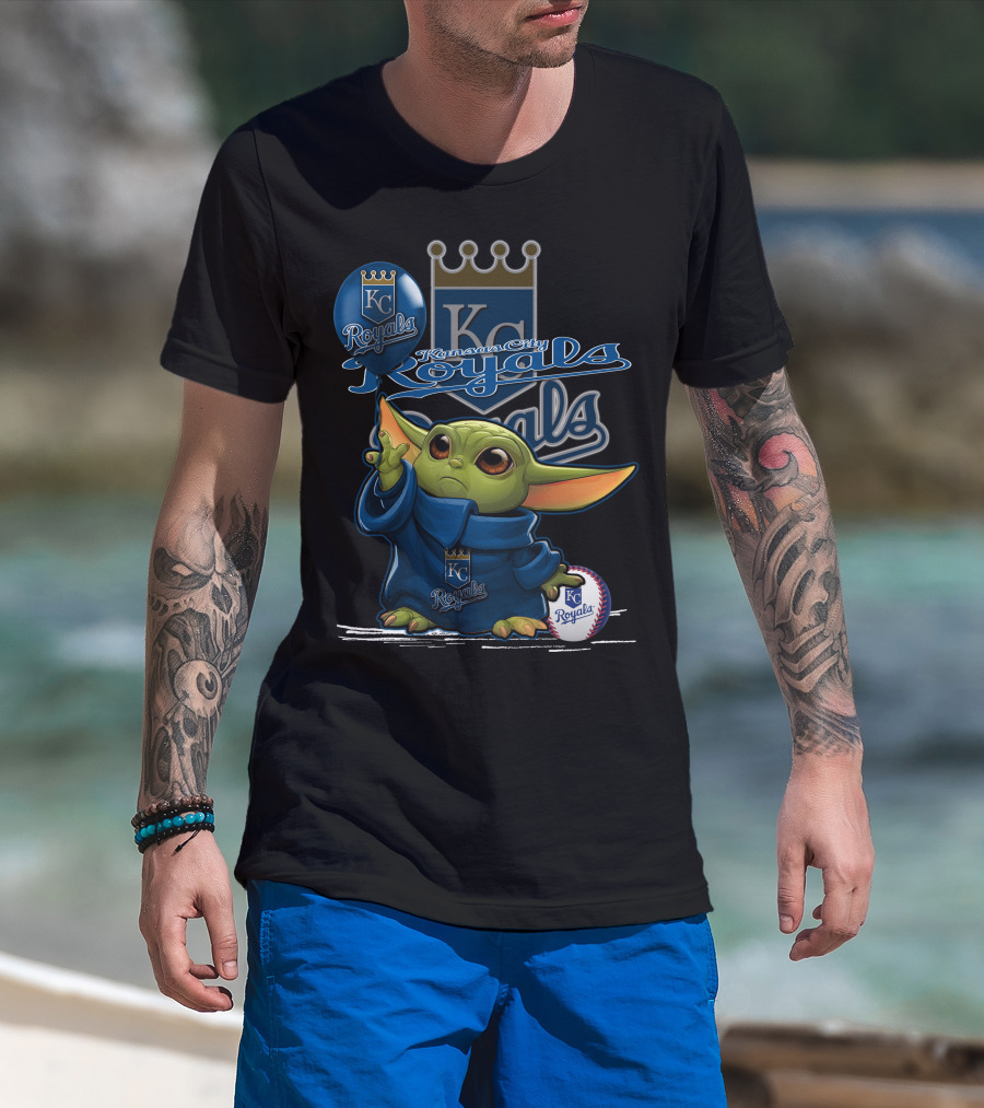 Yoda Kansas City Royals Holding KC Ball And Balloon T-Shirt