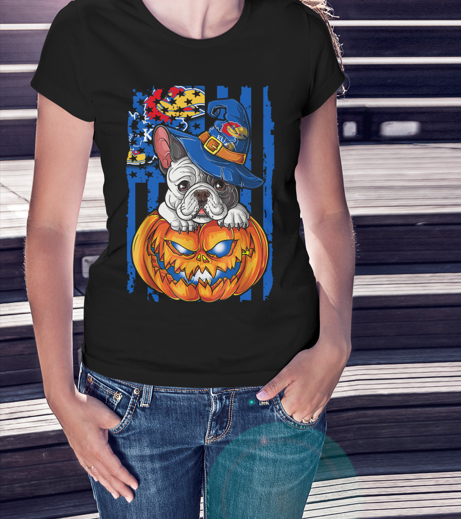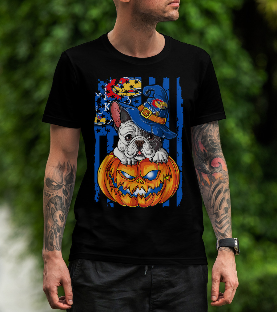 Kansas Jayhawks Bulldog Halloween Pumpkin Wizard Hat T-Shirt