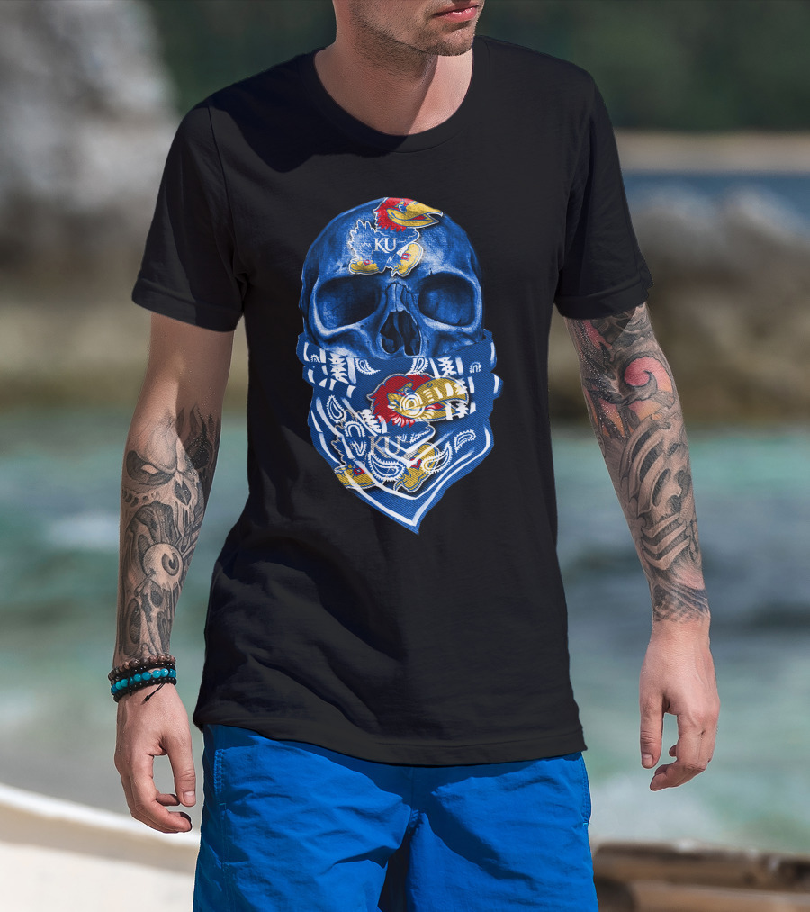 Kansas Jayhawks Skull With KU Bandana T-Shirt