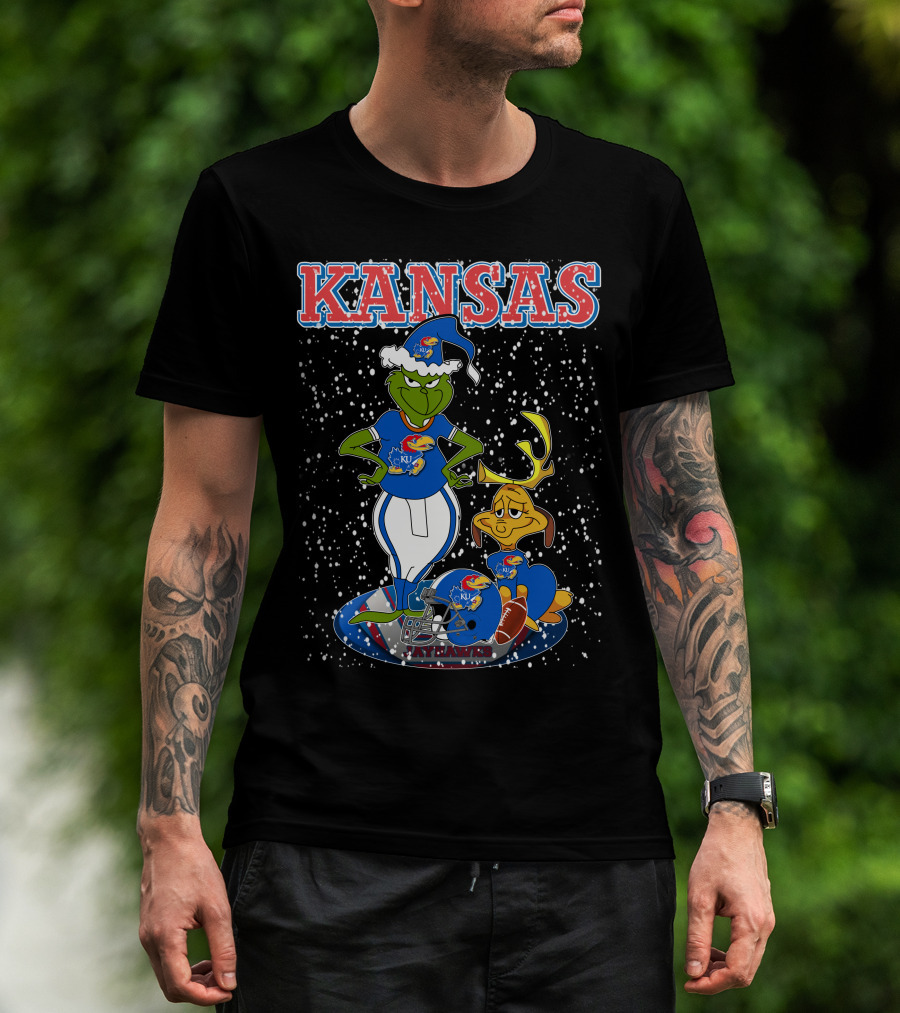 Kansas Grinchxmas Jayhawks KU Snowy Football Holiday T-Shirt