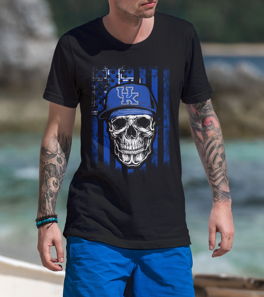 Kentucky Wildcats Skull With Blue Hat And Stripes T-Shirt