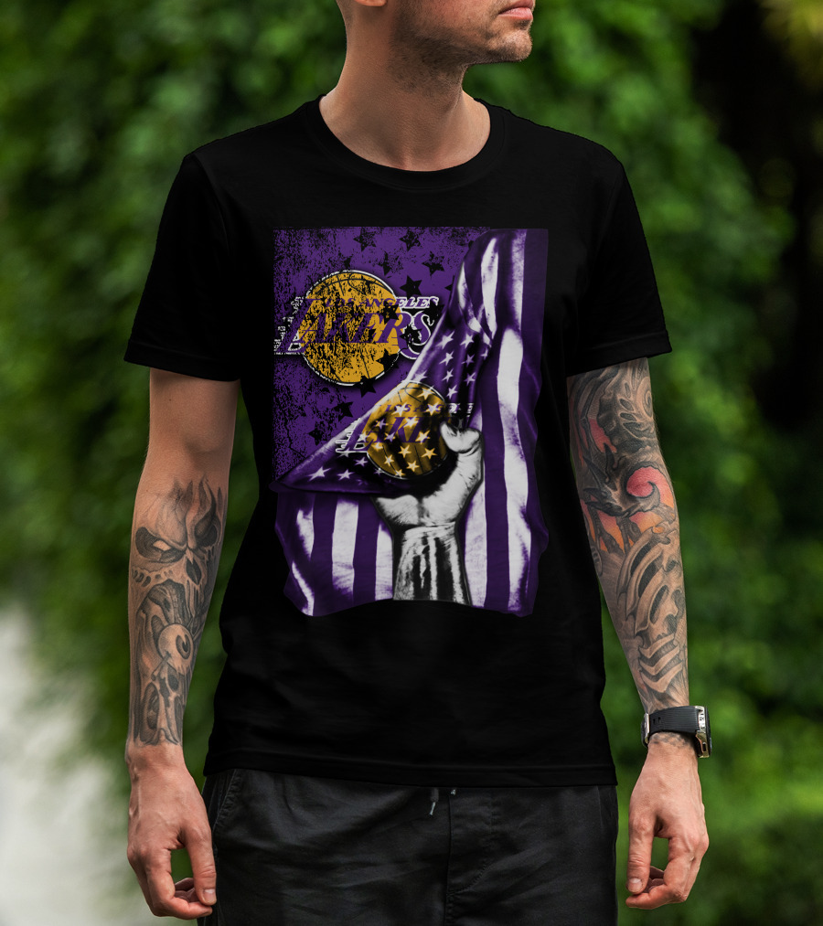 Los Angeles Lakers Purple Stars Stripes Flag Basketball T-Shirt