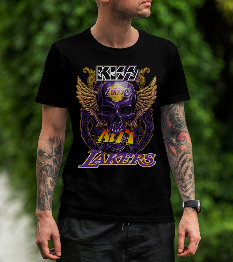 Kiss Los Angeles Lakers Skull Wings T-Shirt