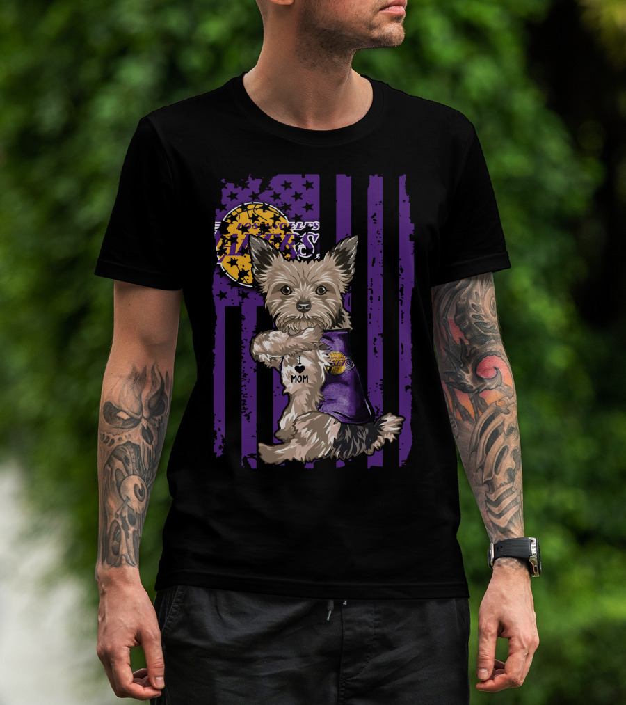 Yorkshire Terrier Los Angeles Lakers I Love Mom T-Shirt