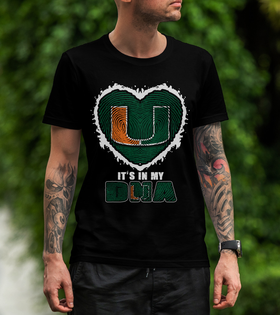It's In My DNA Miami Hurricanes U Logo Fingerprint Heart T-Shirt