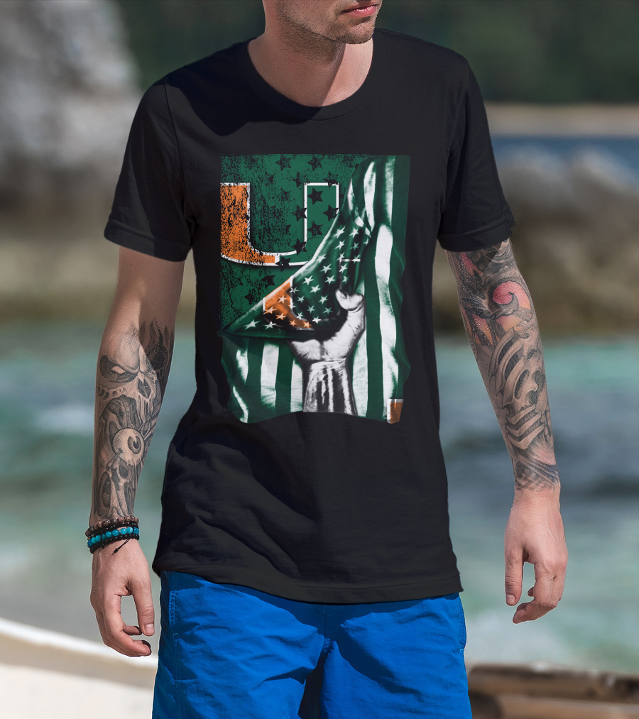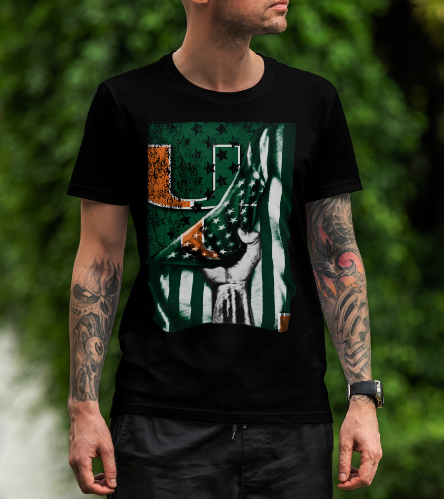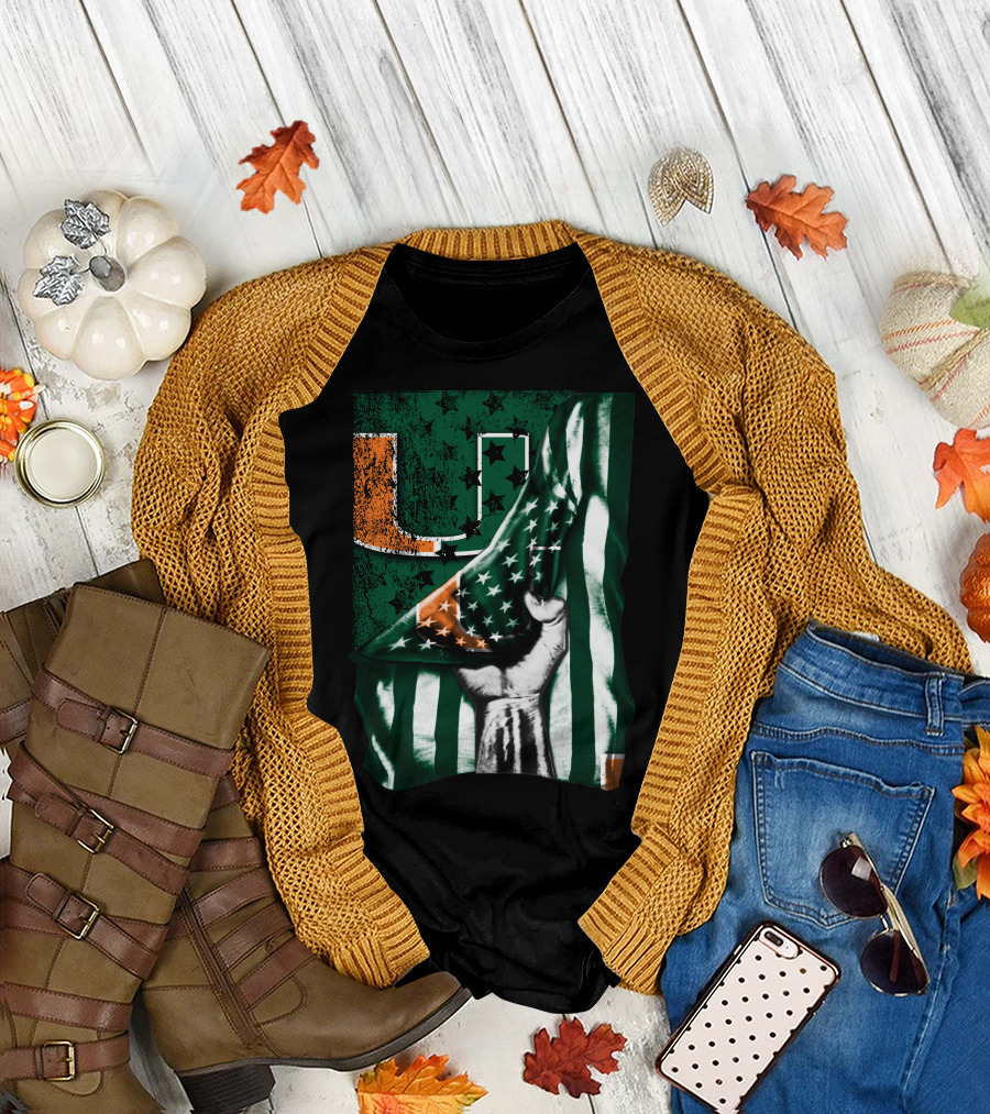 Miami Hurricanes U Flag Stars And Stripes Fist T-Shirt