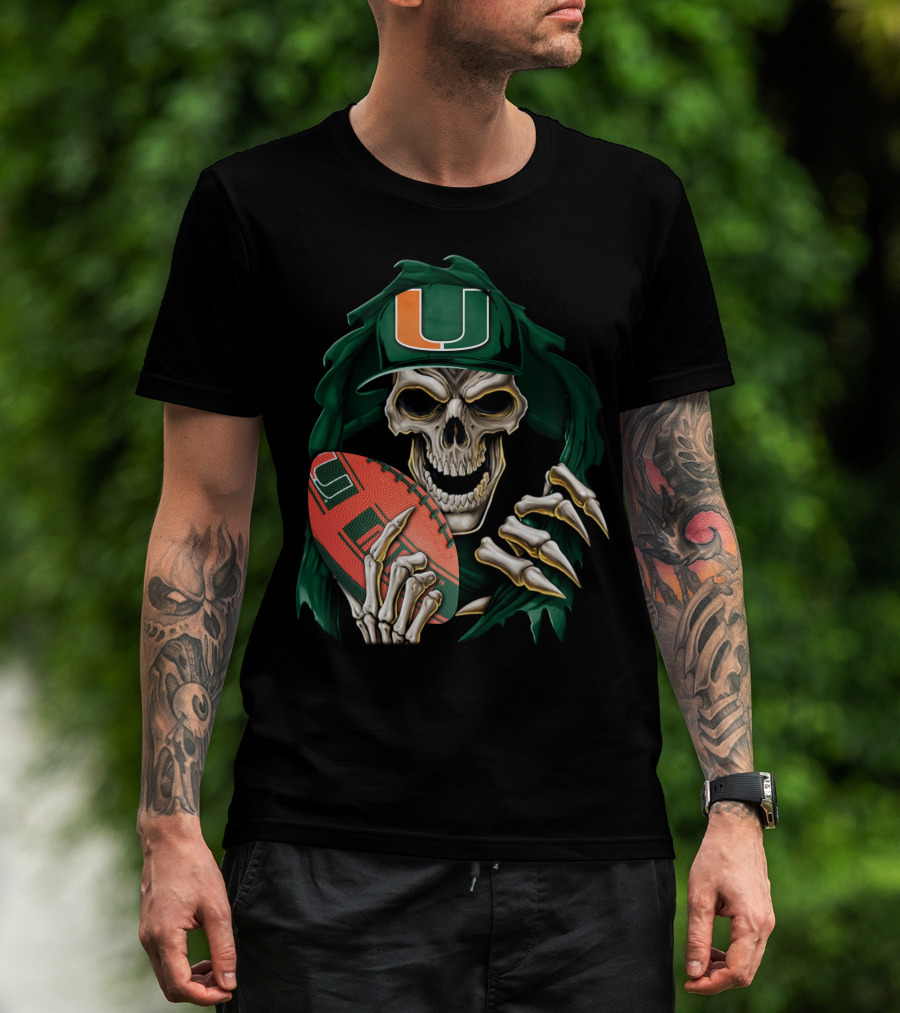 Skullbong Miami Hurricanes Skeleton Holding Football T-Shirt