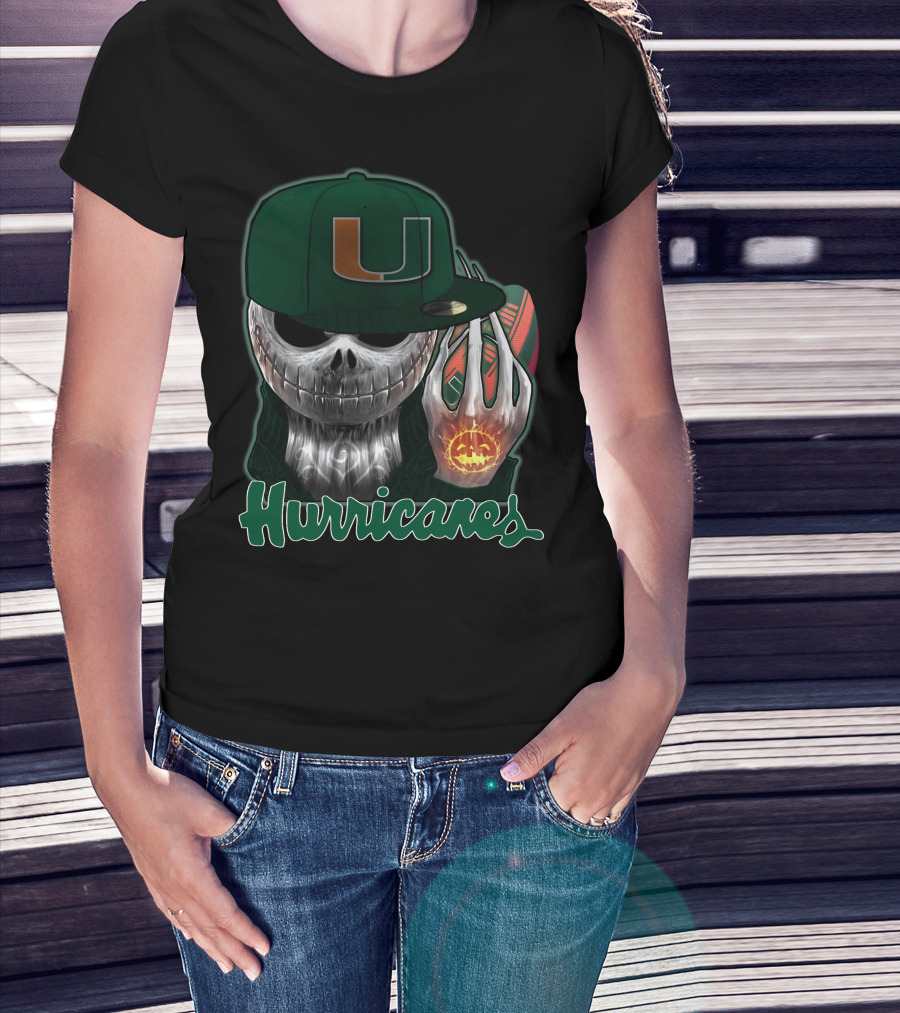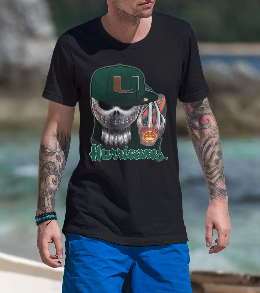 Jackskull Hurricanes Miami Football Icon With Pumpkin And Cap T-Shirt