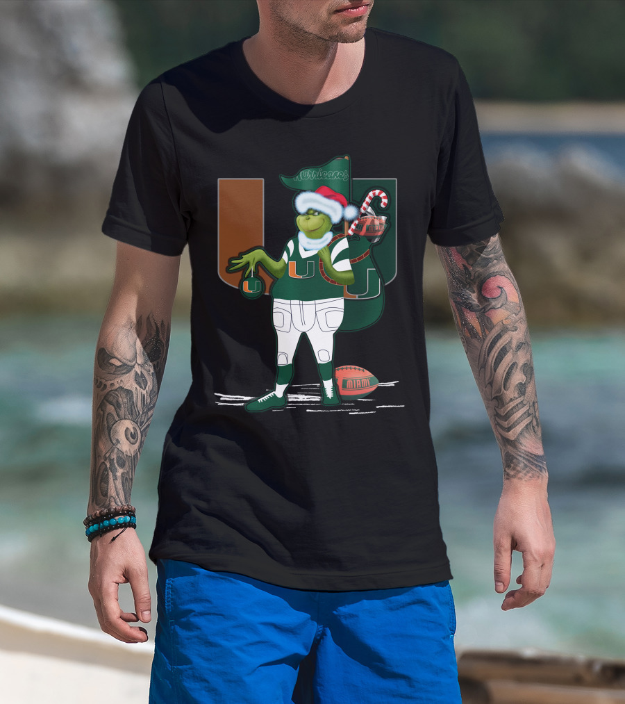 How much will this Grinchxmas Miami Hurricanes Festive Football Santa Grinch with Logo and Candy Cane Sack shirt shrink?