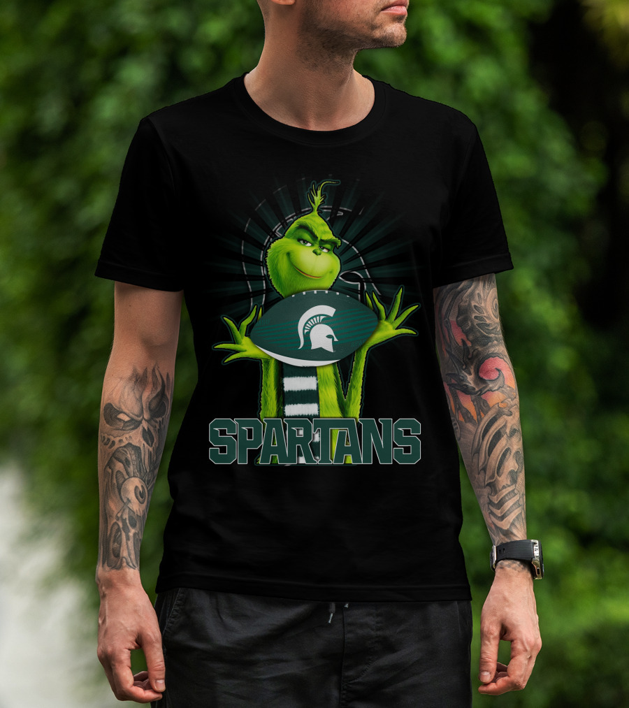 The Grinch Spartans Football Michigan State T-shirt is designed for everyday wear and a consistent fit. Fabric is pre-shrunk ring-spun cotton with durable stitching. See the size chart below for exact measurements.