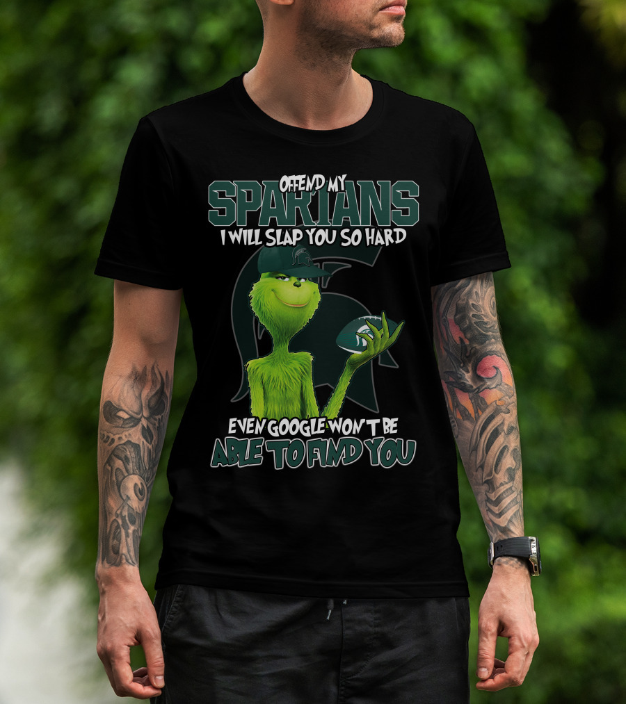 Offend My Spartans I Will Slap You So Hard Even Google Won't Be Able To Find You Grinch Michigan State Spartans T-Shirt