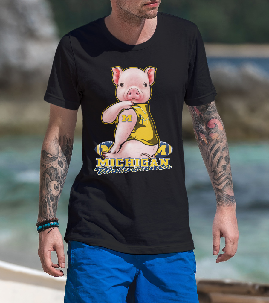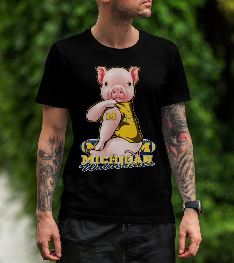 The Michigan Wolverines Pig Football T-shirt is designed for everyday wear and a consistent fit. Fabric is pre-shrunk ring-spun cotton with durable stitching. See the size chart below for exact measurements.