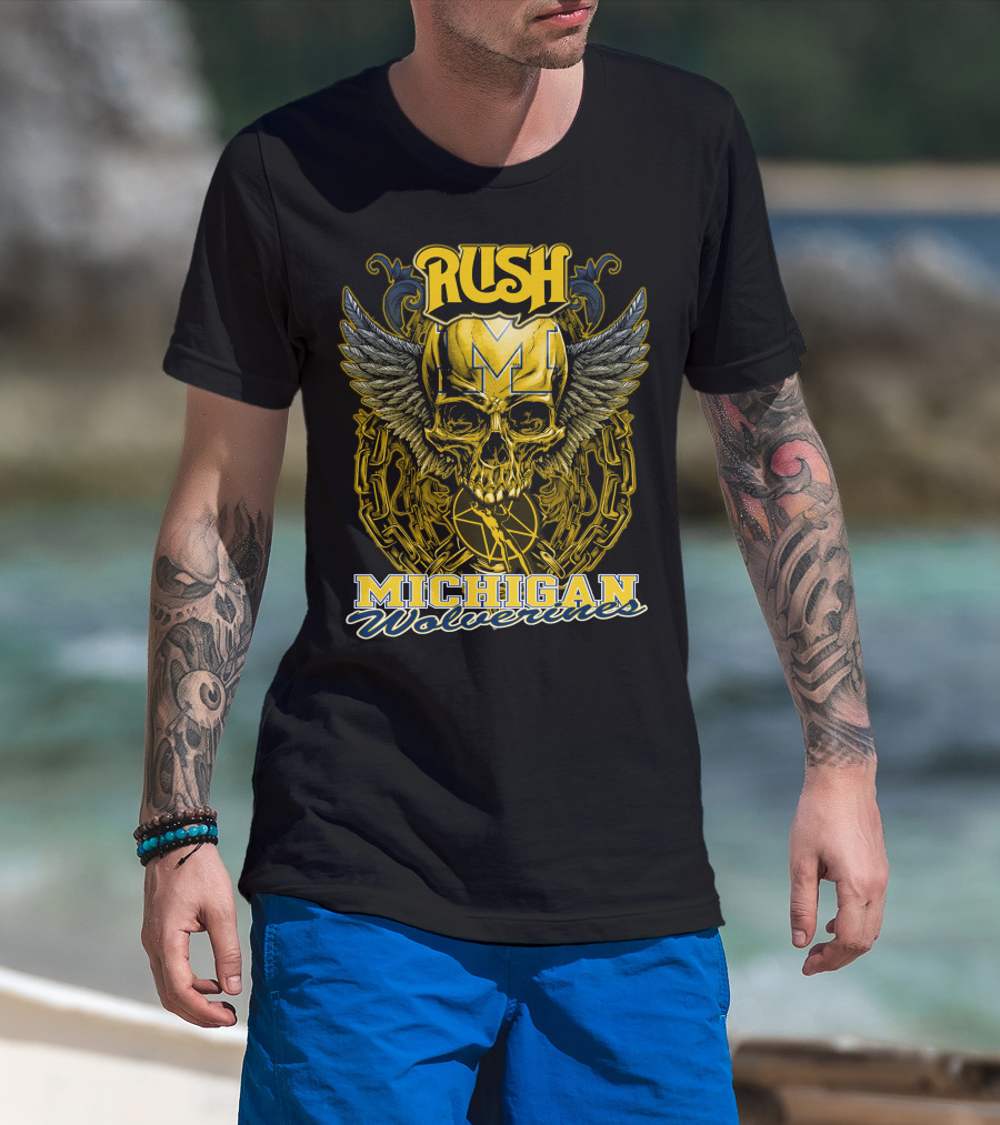 Rush Michigan Wolverines Skull Wings Chain T-Shirt