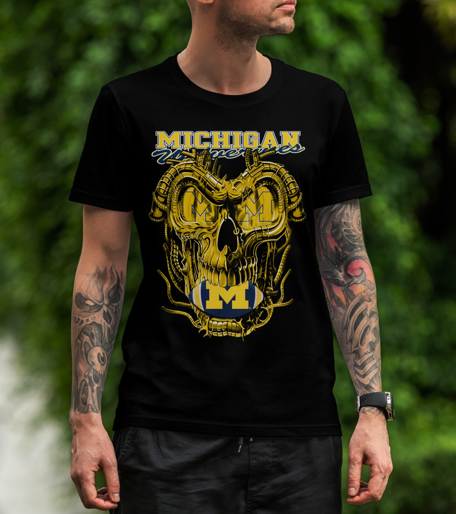 Dragonskull Michigan Wolverines M Football Skull T-Shirt