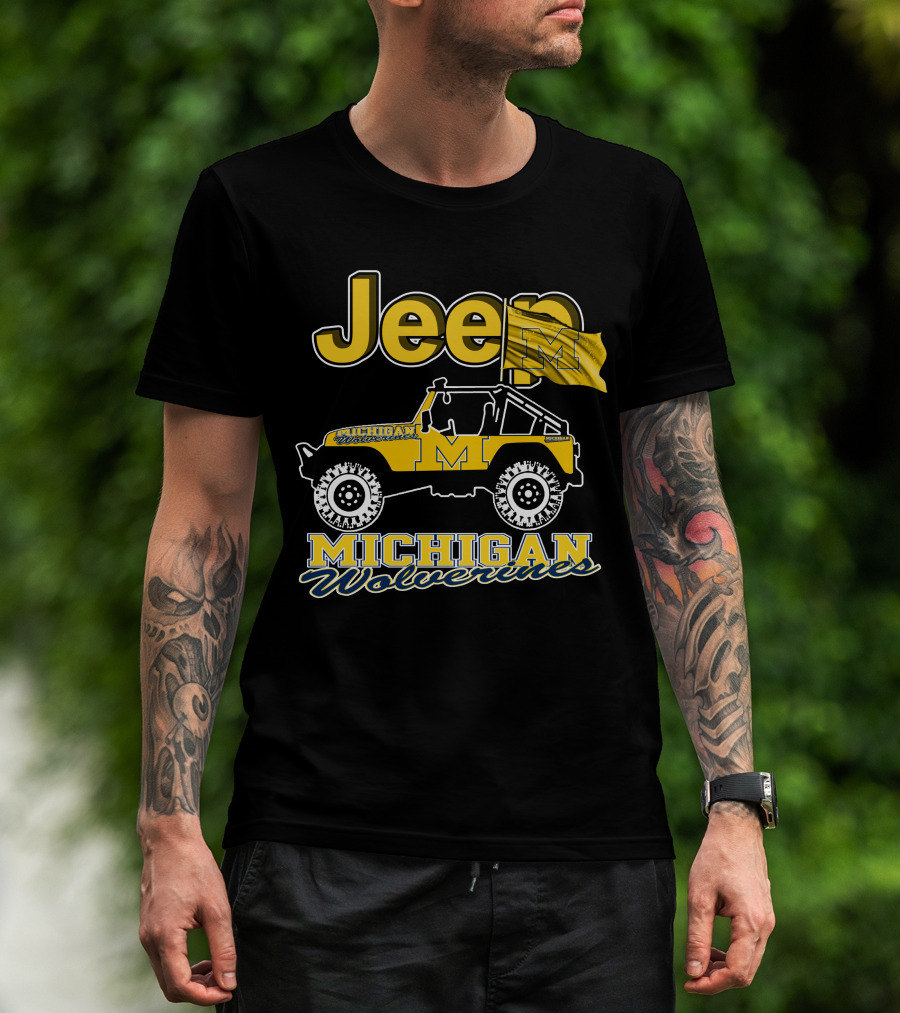 The Jeep Michigan Wolverines Flag T-shirt is designed for everyday wear and a consistent fit. Fabric is pre-shrunk ring-spun cotton with durable stitching. See the size chart below for exact measurements.