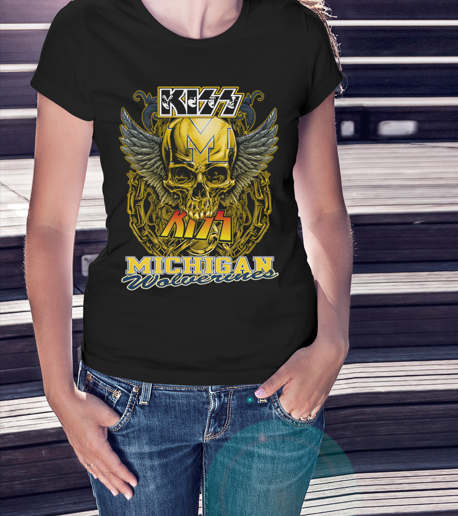 Kiss Michigan Wolverines Skull With Wings And Chains T-Shirt