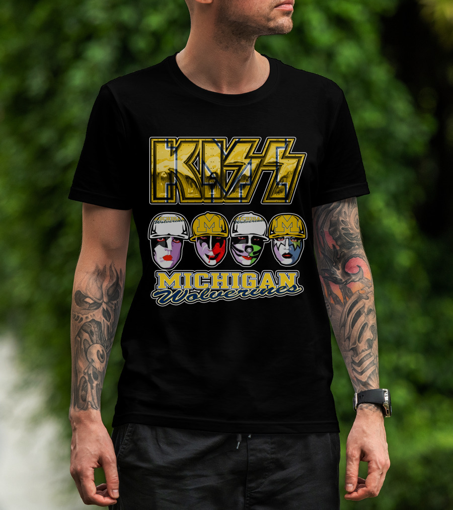 KISS Michigan Wolverines Faces In Helmets T-Shirt