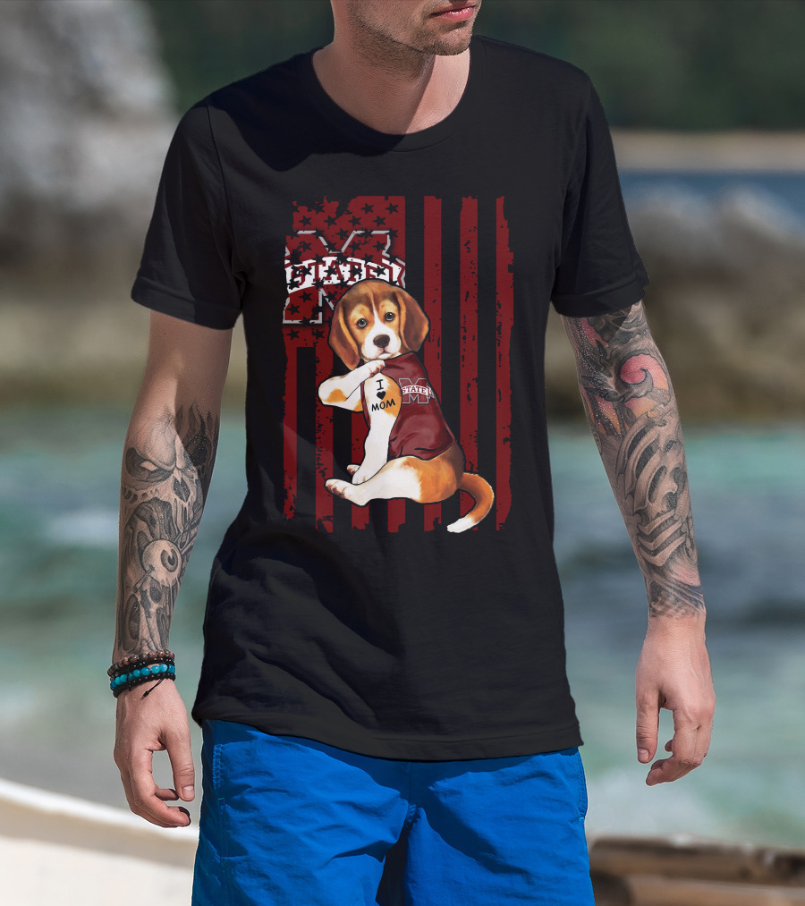 Mississippi State Bulldogs Beagle With I Love Mom Tattoo T-Shirt