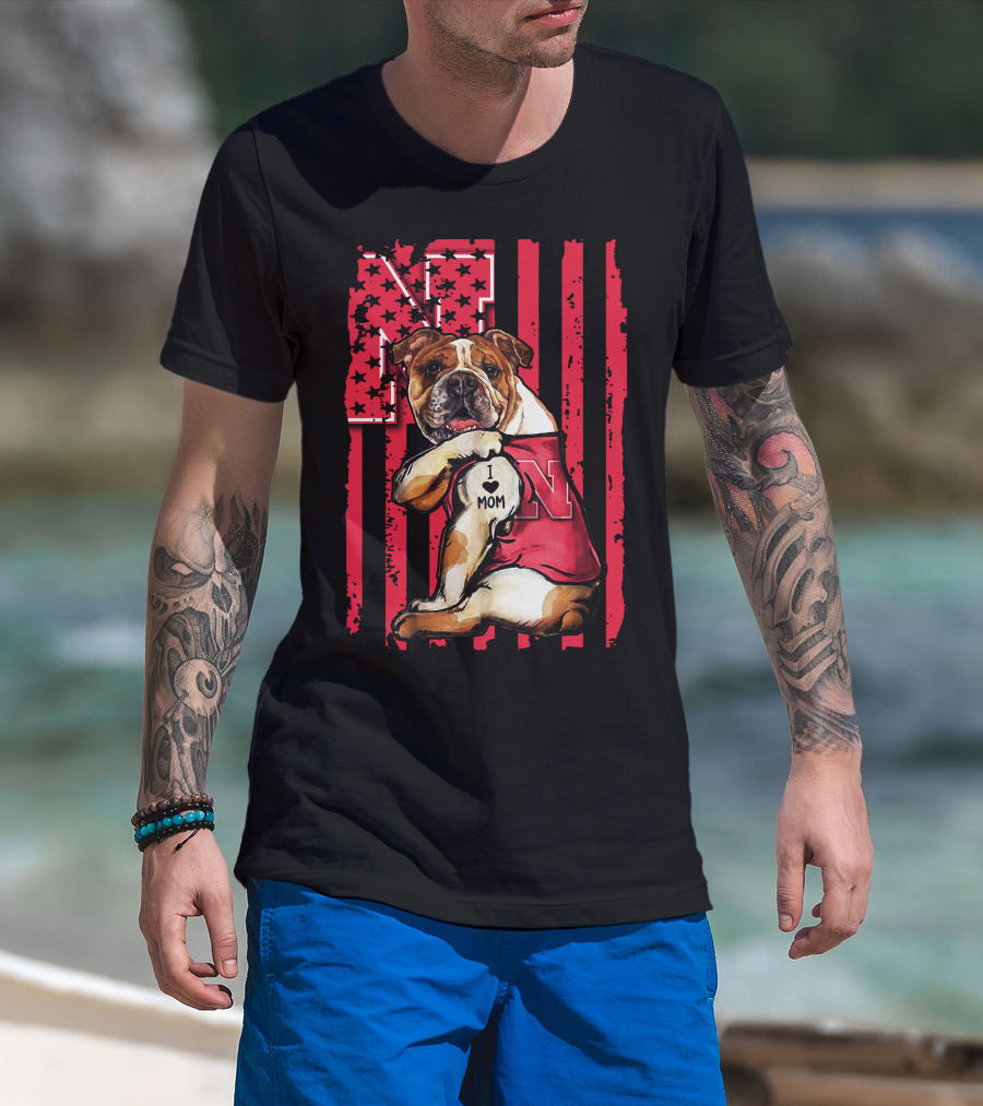 Bulldog I Love Mom Nebraska Cornhuskers N Flag Stars T-Shirt