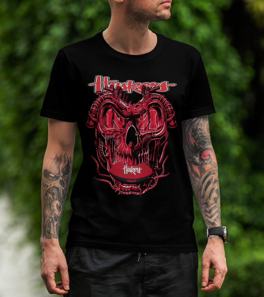 Huskers Dragon Skull Nebraska Football Fan T-Shirt