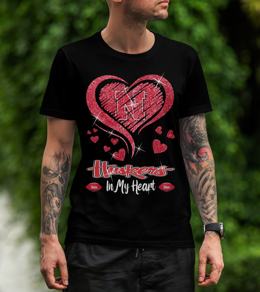 Huskers In My Heart Nebraska Cornhuskers Football Hearts T-Shirt