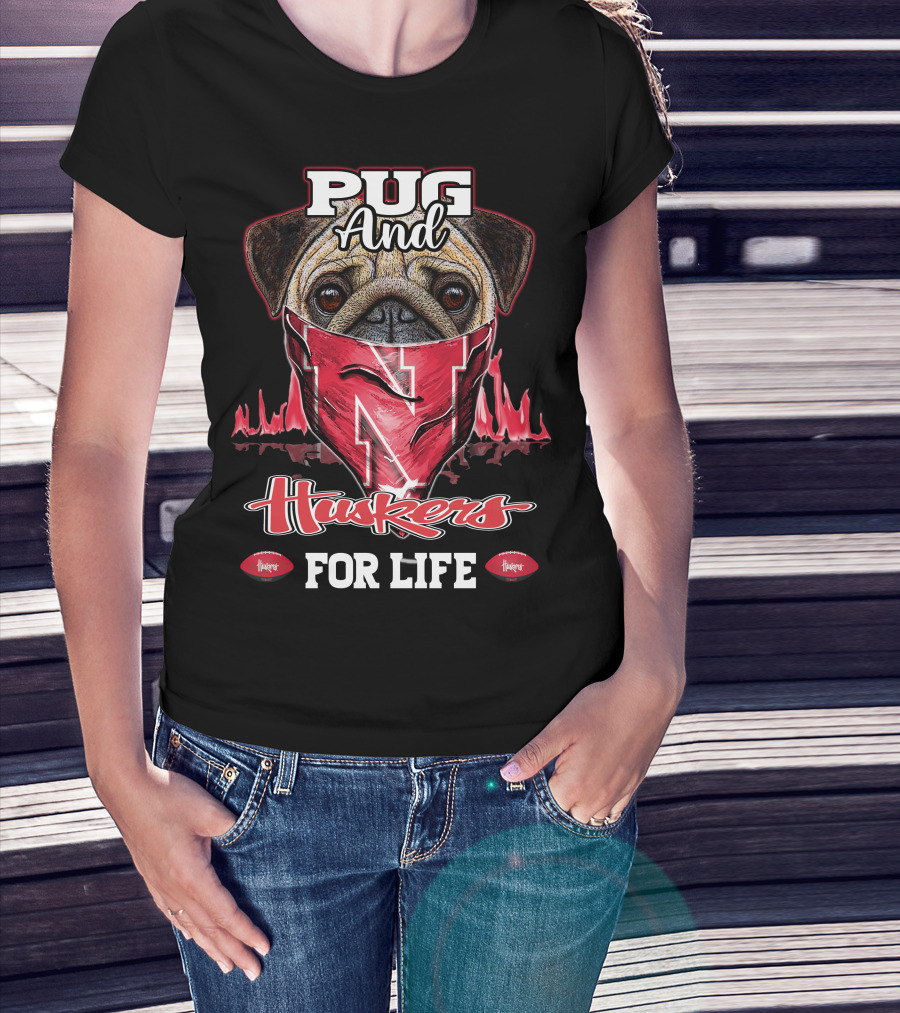 Pug And Huskers Nebraska Cornhuskers For Life T-Shirt