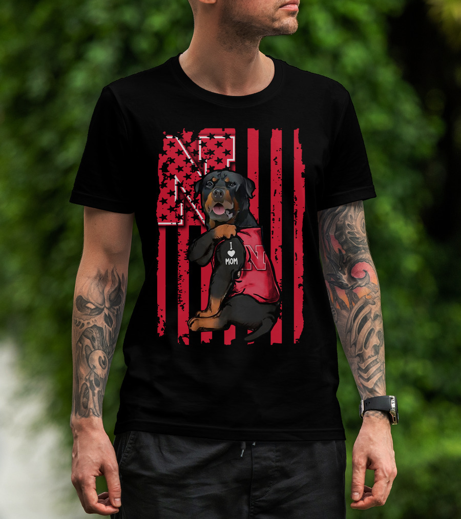 Rottweiler I Love Mom Nebraska Cornhuskers N Flag Stripes T-Shirt