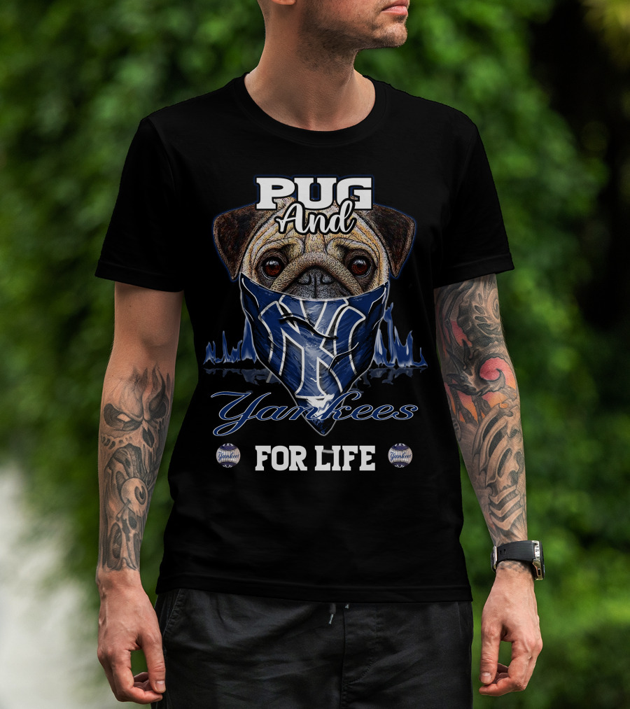 The Pug and Yankees For Life T-shirt is designed for everyday wear and a consistent fit. Fabric is pre-shrunk ring-spun cotton with durable stitching. See the size chart below for exact measurements.