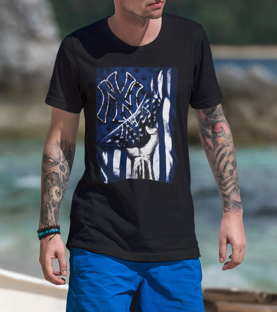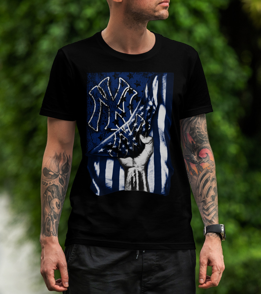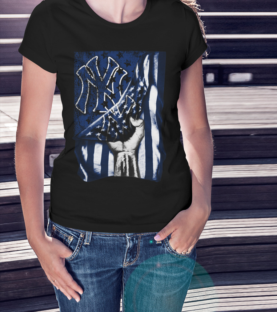 The New York Yankees NY American Flag Star Motif T-shirt is designed for everyday wear and a consistent fit. Fabric is pre-shrunk ring-spun cotton with durable stitching. See the size chart below for exact measurements.
