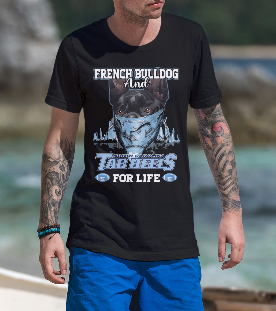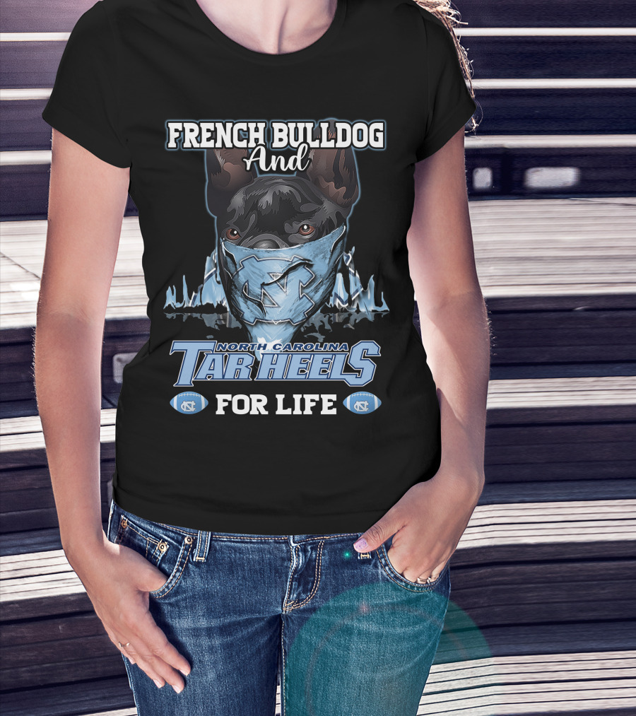 French Bulldog And North Carolina Tar Heels For Life T-Shirt
