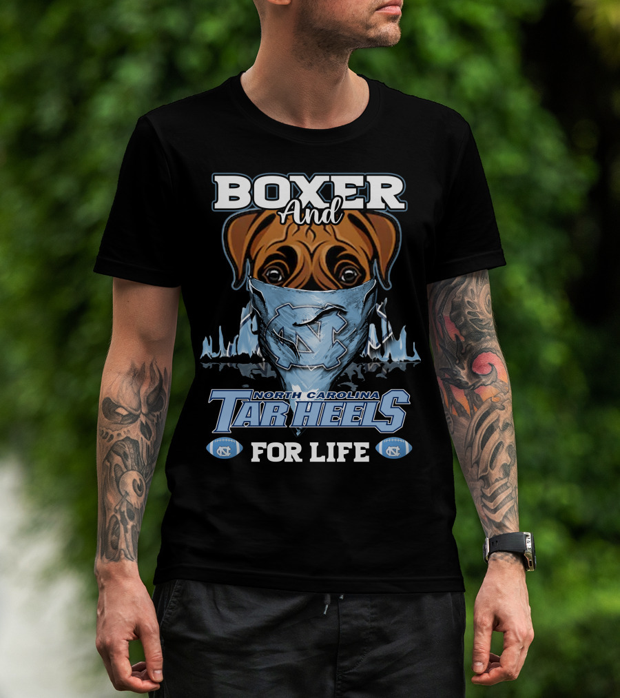Boxer And North Carolina Tar Heels For Life T-Shirt
