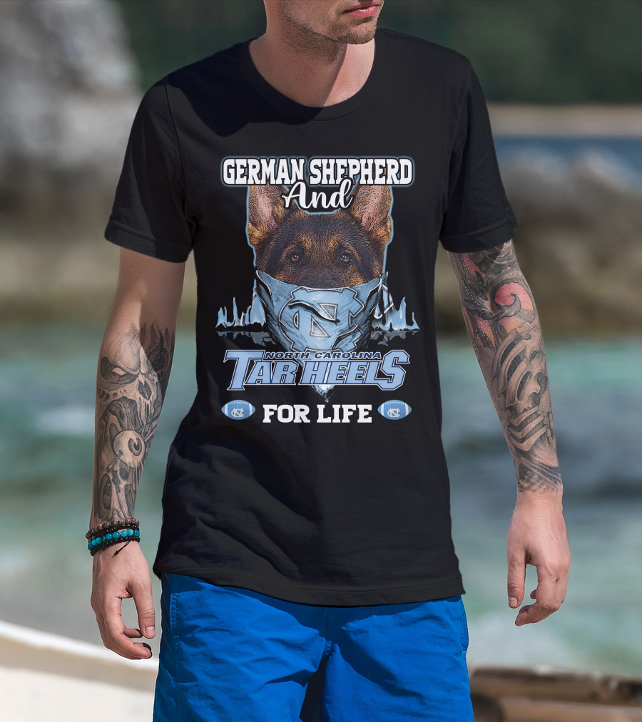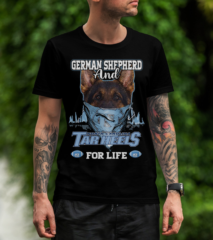 German Shepherd And North Carolina Tar Heels For Life T-Shirt