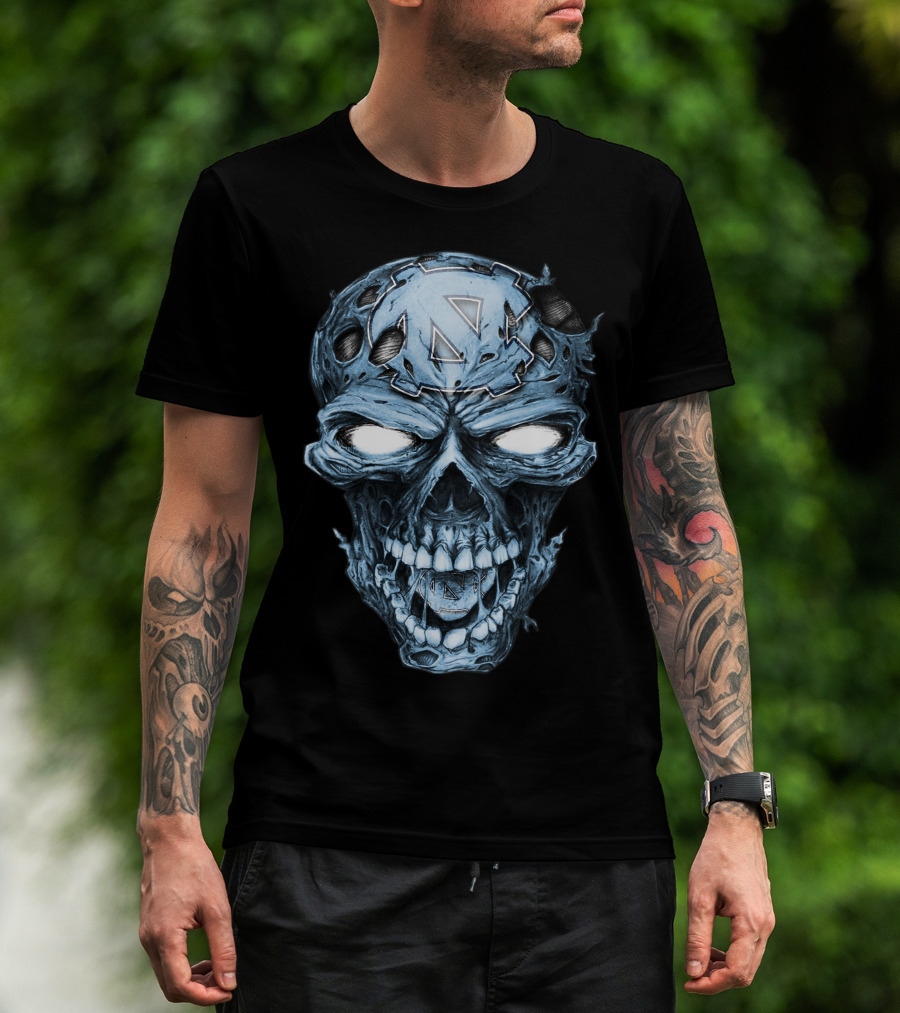 The North Carolina Tar Heels Skull T-shirt is designed for everyday wear and a consistent fit. Fabric is pre-shrunk ring-spun cotton with durable stitching. See the size chart below for exact measurements.
