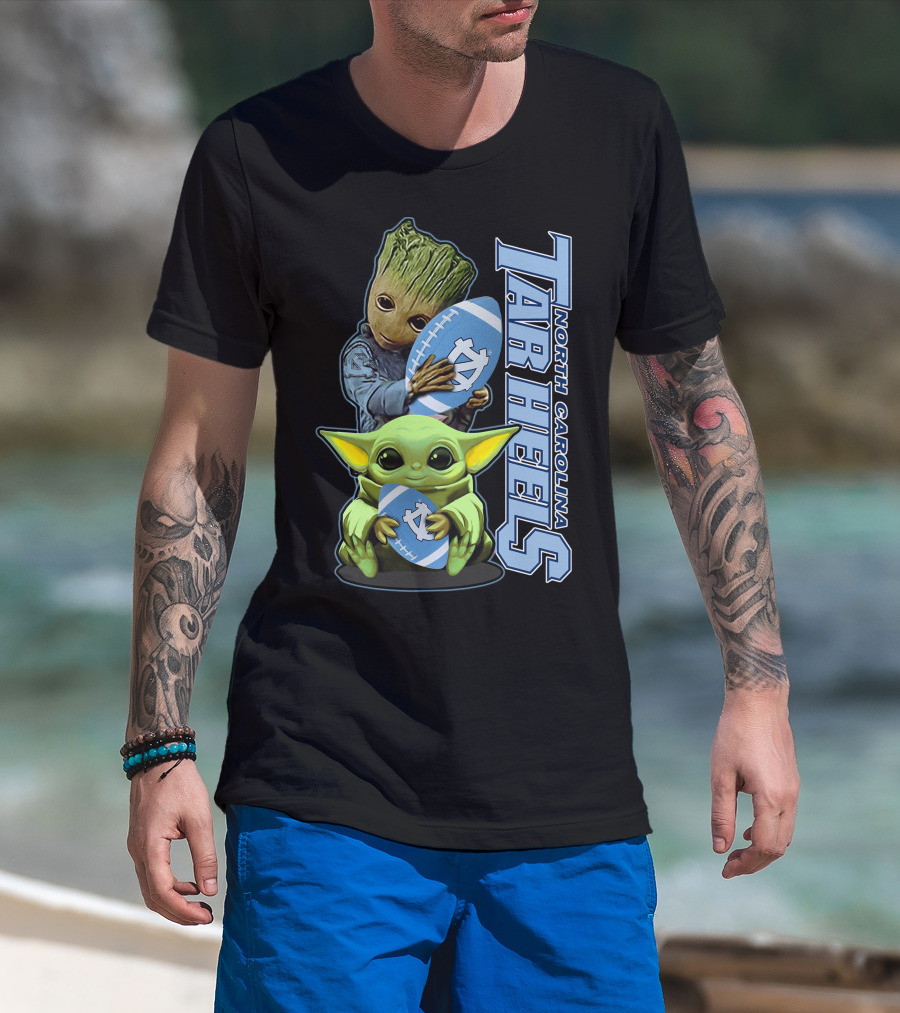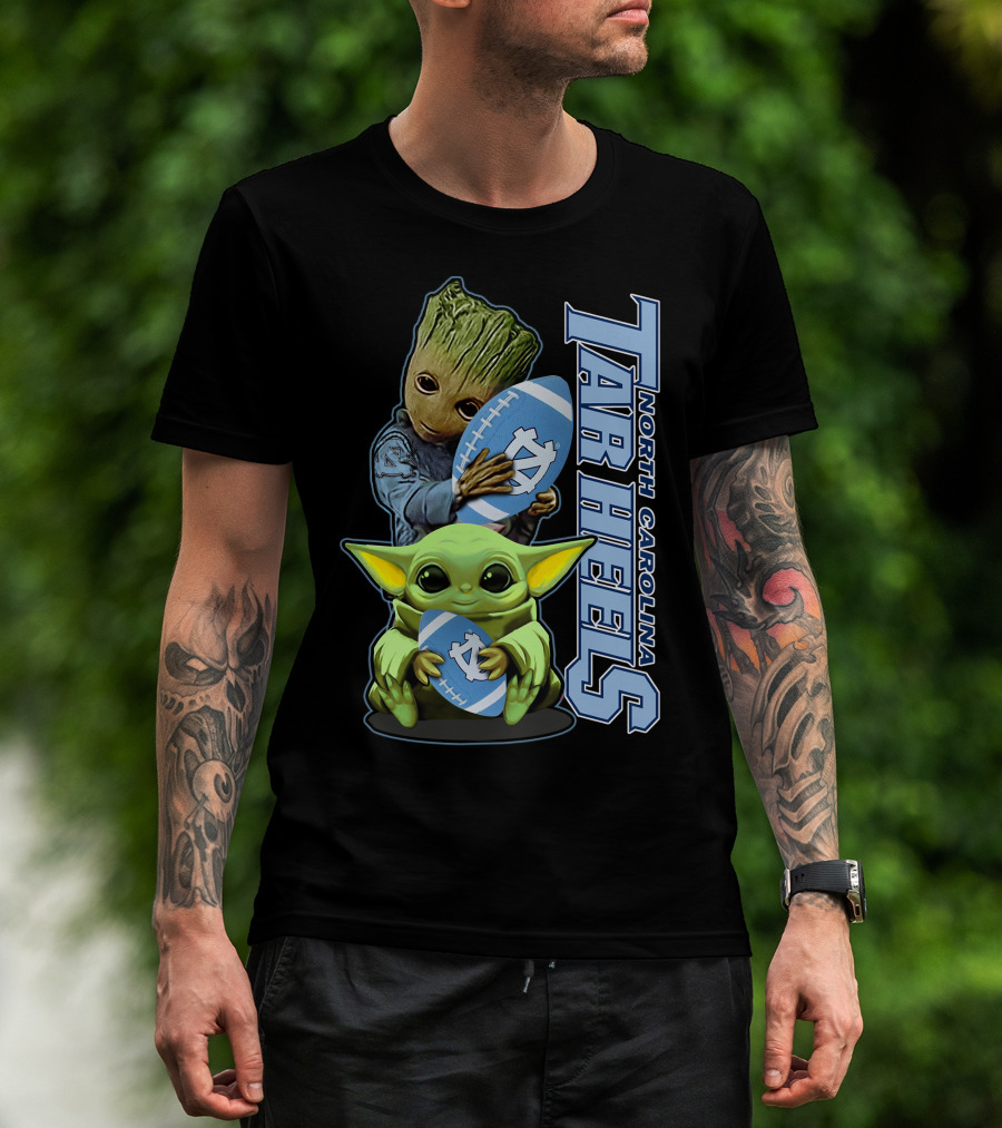 The Grzd Baby Alien Groot Holding North Carolina Tar Heels Football T-shirt is designed for everyday wear and a consistent fit. Fabric is pre-shrunk ring-spun cotton with durable stitching. See the size chart below for exact measurements.