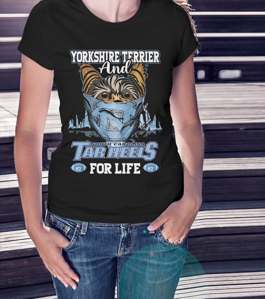 Yorkshire Terrier And North Carolina Tar Heels For Life T-Shirt