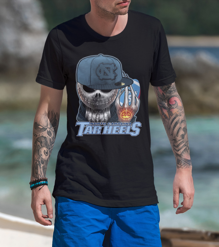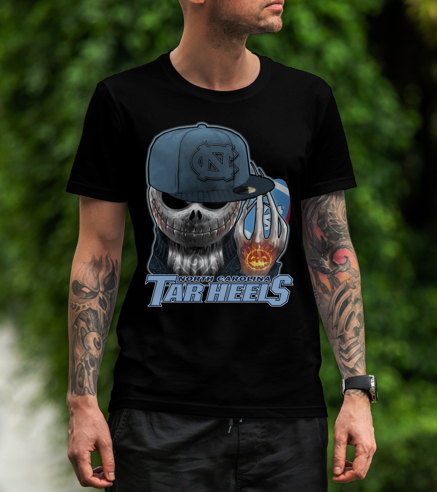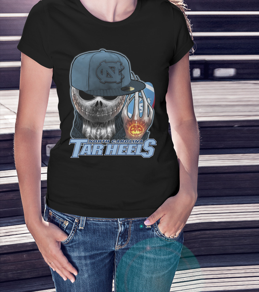 North Carolina Tar Heels Jack Skellington Skull Halloween Fan T-Shirt