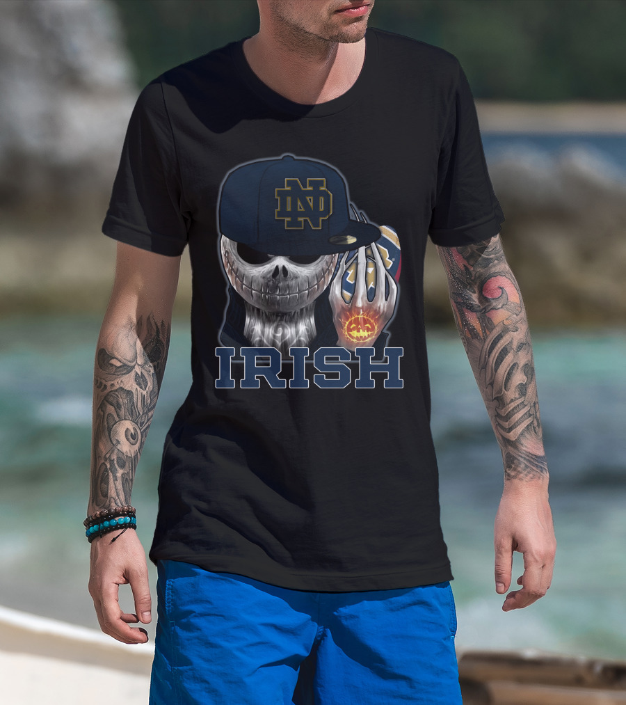 Notre Dame ND Irish Jackskull Pumpkin Football T-Shirt