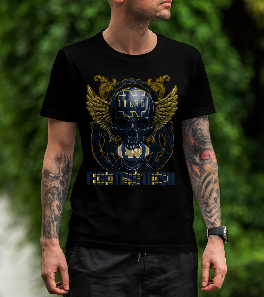 ND Skull Wings Chain Football Fighting Irish T-Shirt