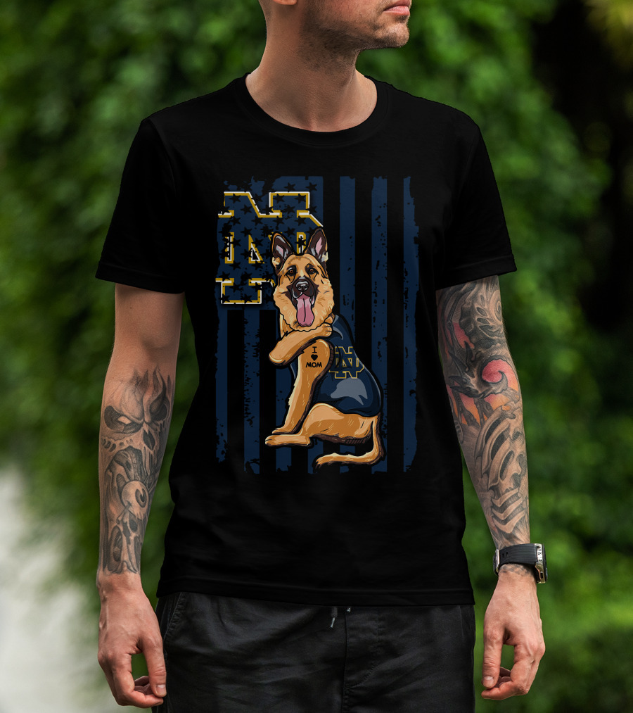 German Shepherd Notre Dame Fighting Irish I Love Mom Tattoo T-Shirt