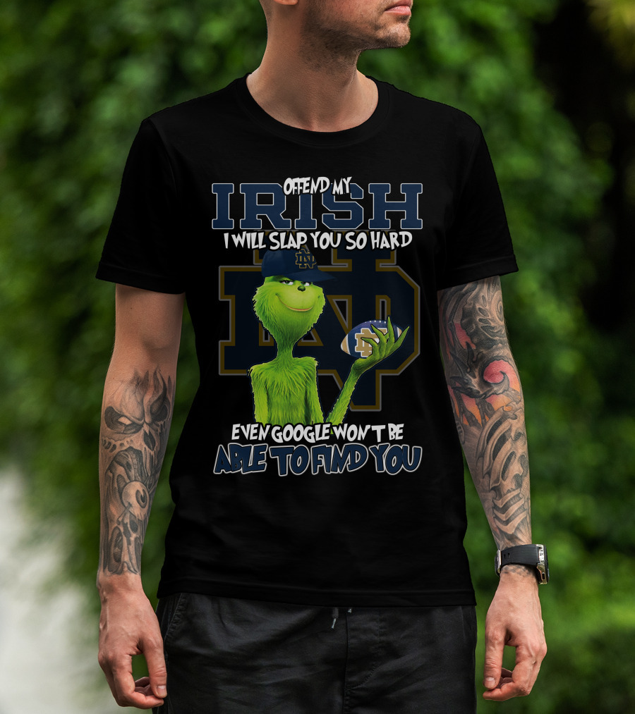 Grinch Notre Dame Irish Offend My Irish I Will Slap You So Hard Even Google Won't Be Able To Find You T-Shirt
