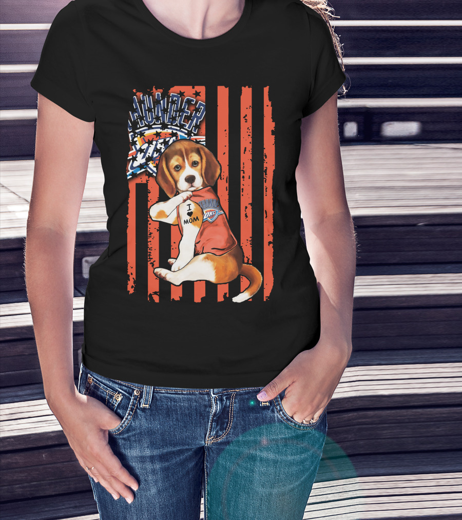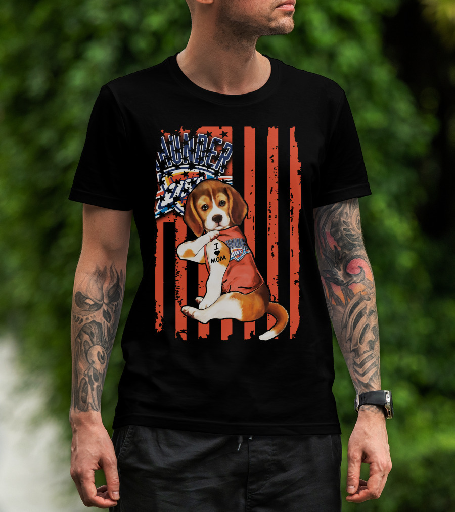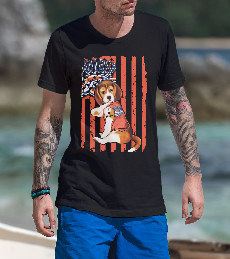 Oklahoma City Thunder Beagle Puppy Tattoo I Love Mom T-Shirt