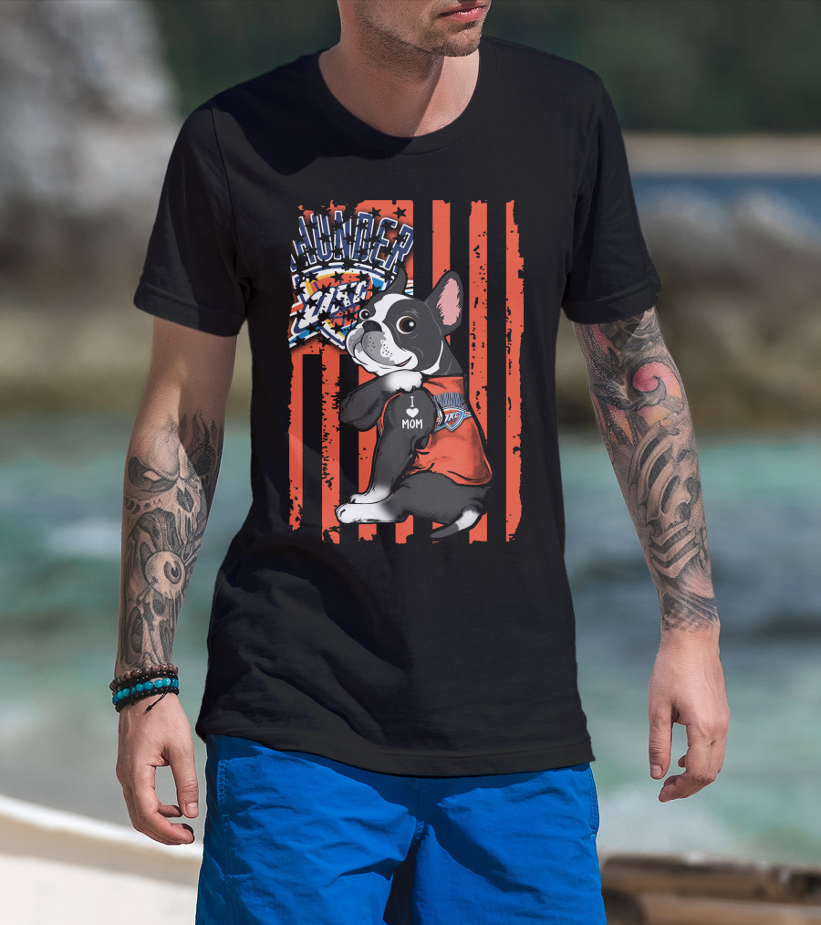 Boston Terrier I Love Mom Oklahoma City Thunder Fan T-Shirt