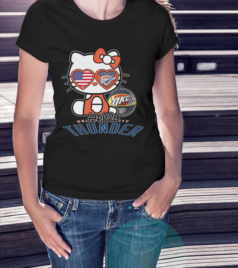Hello Kitty Oklahoma City Thunder OKC Basketball USA Flag T-Shirt