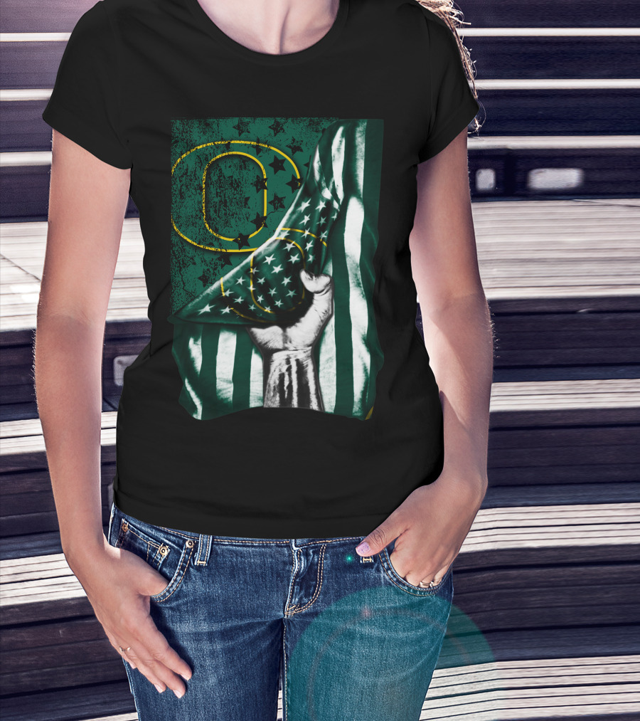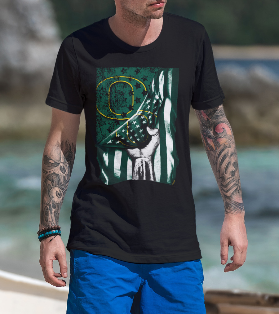 Oregon Ducks American Flag Fist And Stars T-Shirt