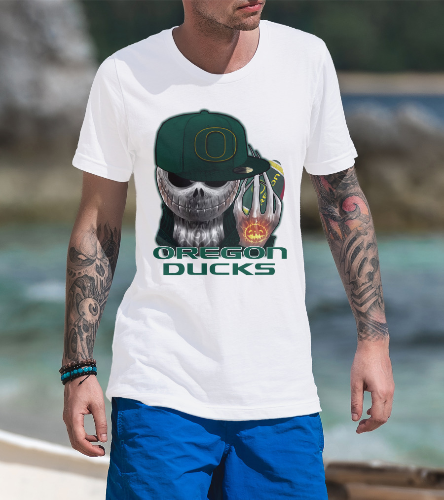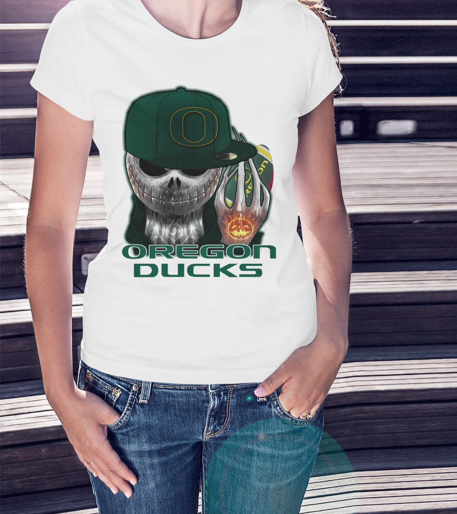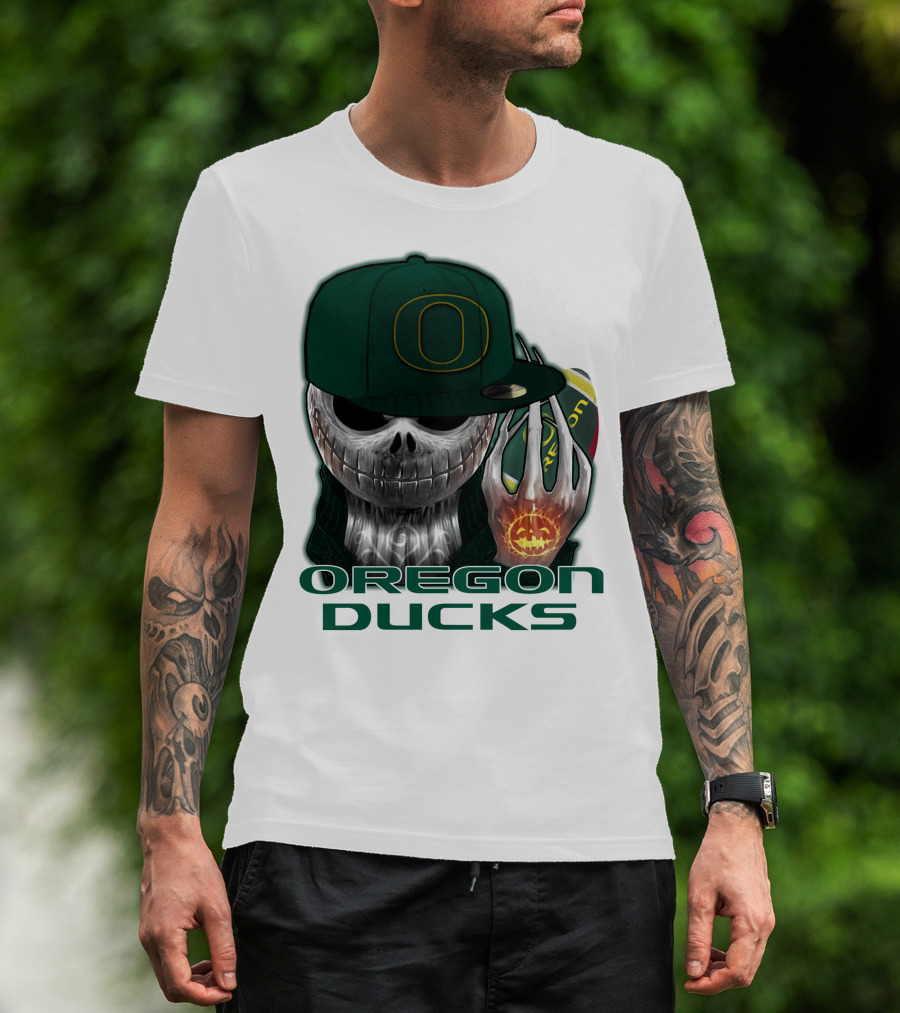 Oregon Ducks Jack Skellington Skull Halloween Football T-Shirt