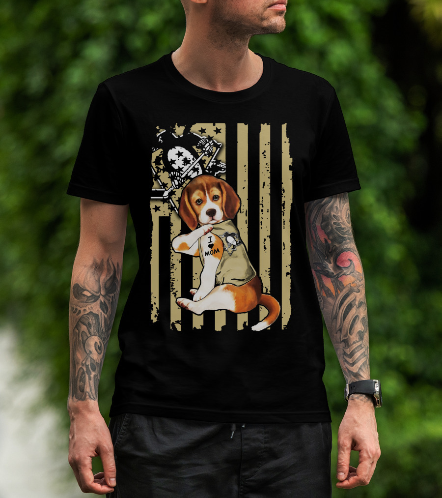 Beagle I Love Mom Pittsburgh Penguins American Flag T-Shirt