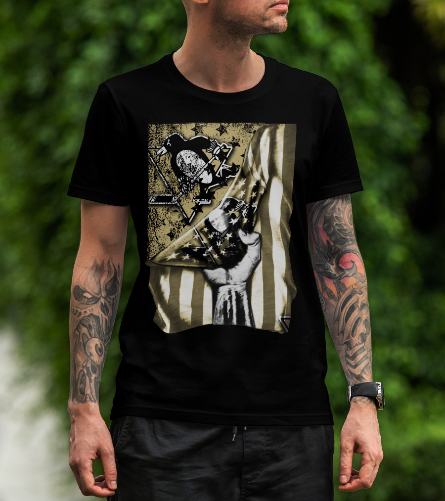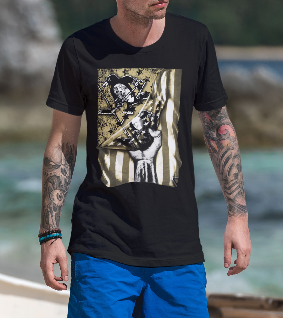 Pittsburgh Penguins Logo With American Flag And Raised Fist T-Shirt