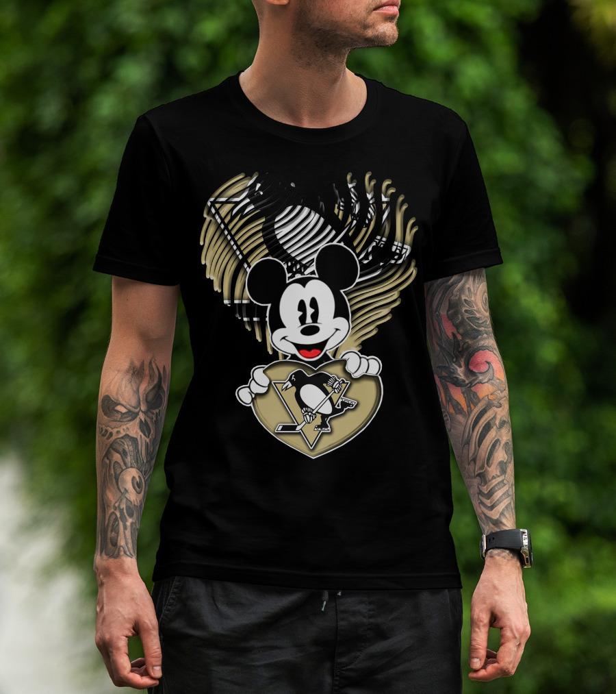 The Mick Penguins Hockey Heart T-shirt is designed for everyday wear and a consistent fit. Fabric is pre-shrunk ring-spun cotton with durable stitching. See the size chart below for exact measurements.