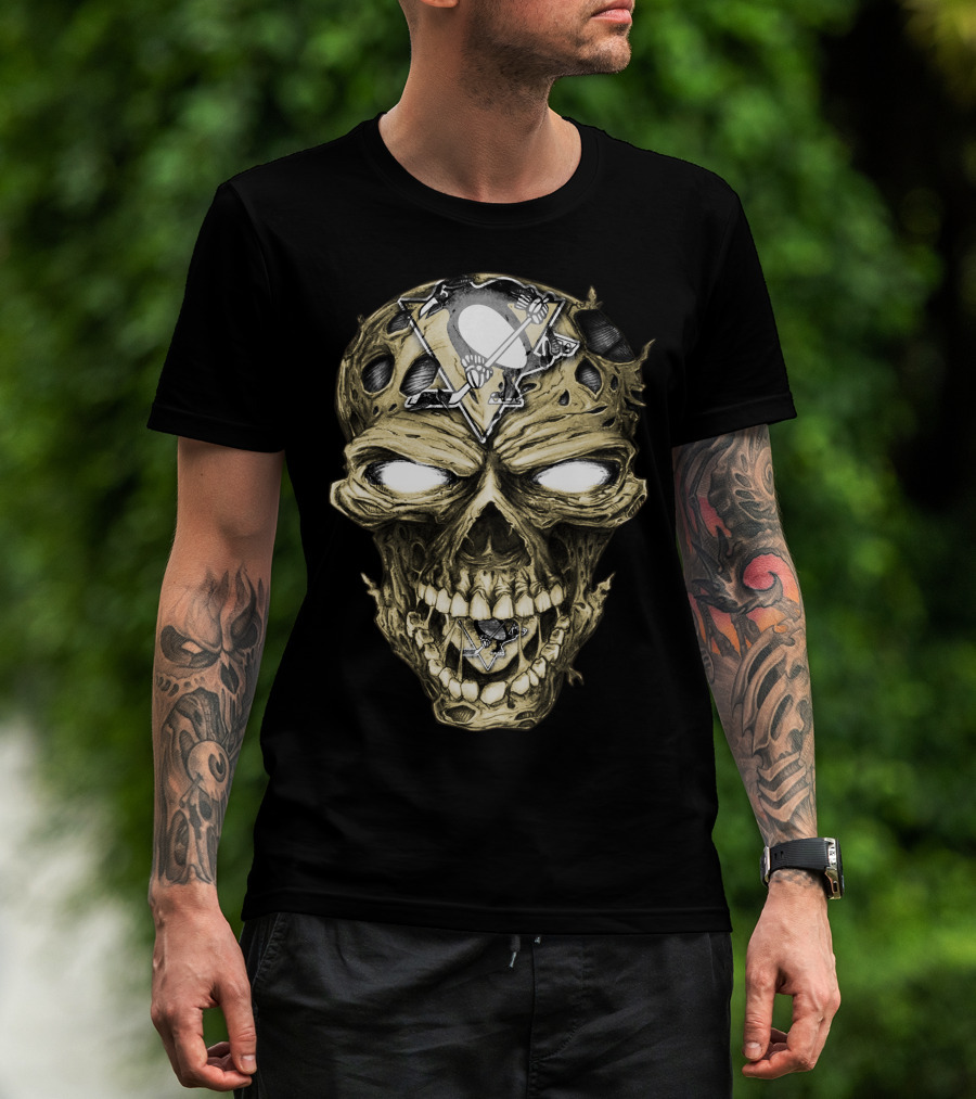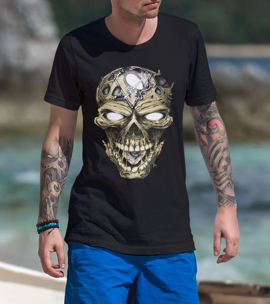 The Pittsburgh Penguins Skull with Team T-shirt is designed for everyday wear and a consistent fit. Fabric is pre-shrunk ring-spun cotton with durable stitching. See the size chart below for exact measurements.